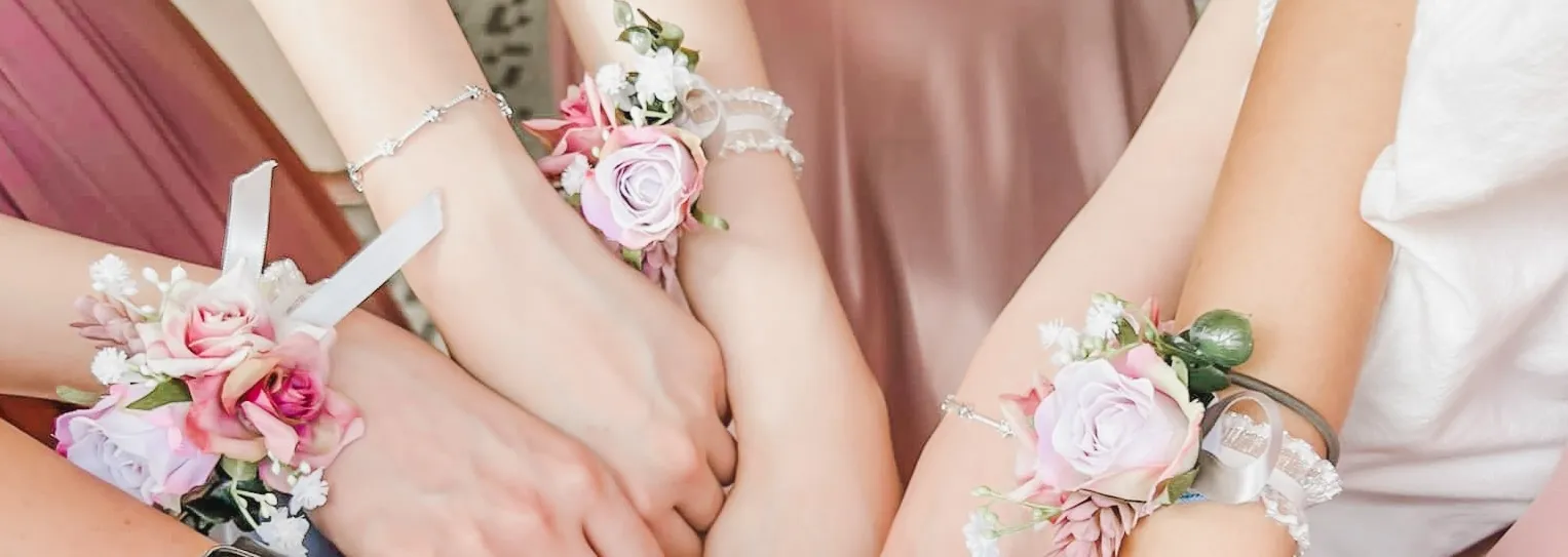 手花一般為姐妹佩戴,連橡筋固定於手腕。手花襟花可配搭不同色系和大小使用。