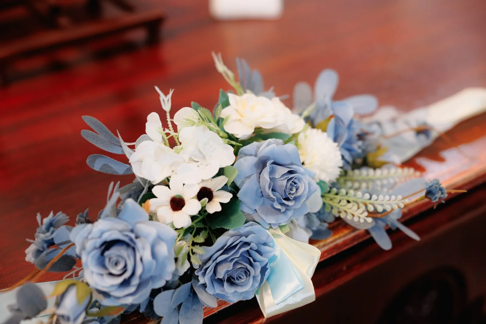 各款絲花裝飾可因應場地特色放置於地下、桌上、樓梯、椅背等等。