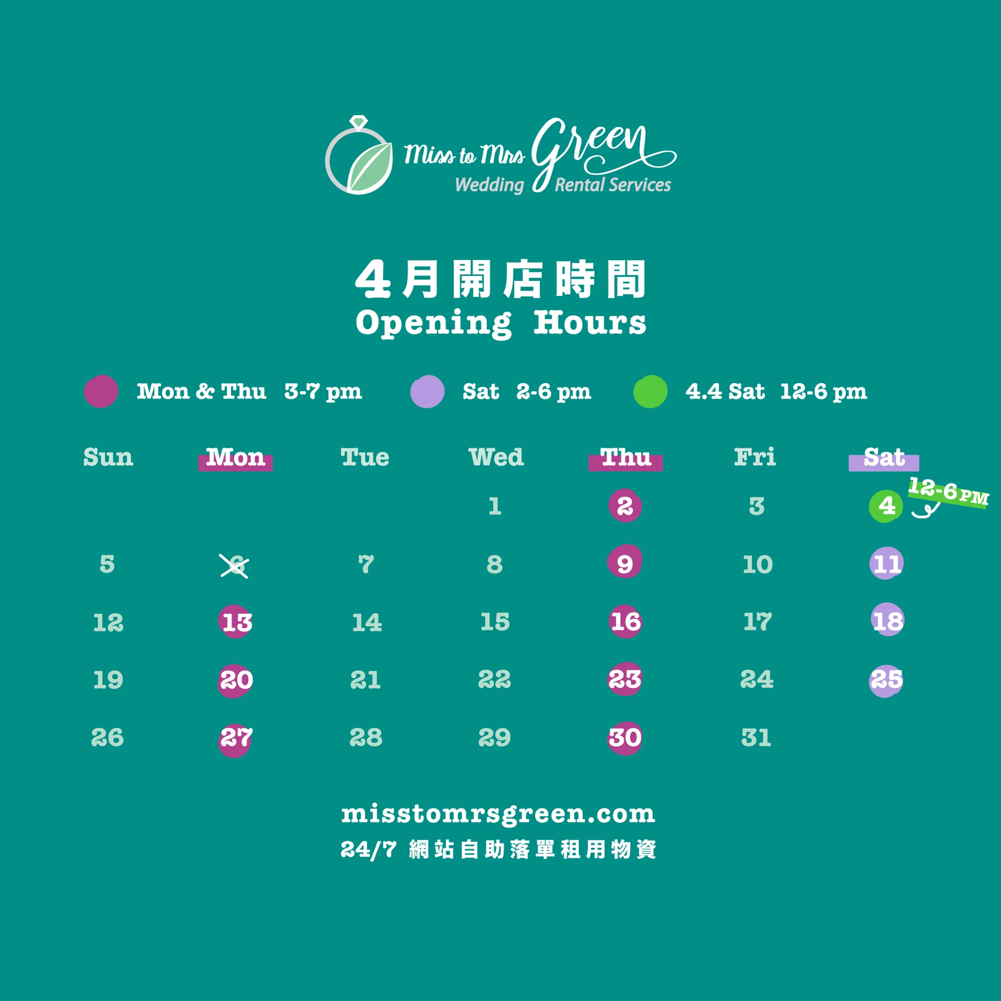 MON & THU 3-7|SAT 2-6